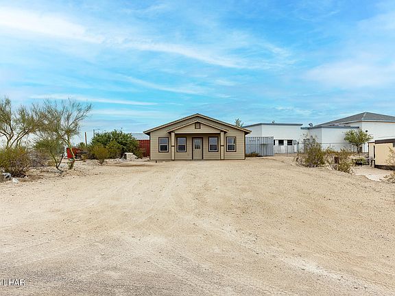 Newly completed, custom home in Yucca townsite. This 2BD, 2BA has an open layout which is perfect for entertaining. Kitchen has set of stainless appliances as well as pantry and custom cabinets. The living room has built in nooks for electronics. Enjoy the durability and easy maintenance of beautiful plank flooring throughout. For ultimate comfort, each room has an efficient mini-split system, allowing you to customize the heating and cooling settings to your preference. The main bedroom has a unique accent wall, a generous walk-in closet, and an ensuite bath complete with a separate tub and shower. A large utility room offers ample space for a washer, dryer, and water heater. Outside, the home features a durable tile roof and a covered front porch with a pavered walkway—perfect for enjoying your morning coffee. The home was placed at the back of the lot, leaving plenty of room for a future garage/workshop, or carport. Located just 35 minutes from both Kingman and Lake Havasu this home offers the peace of country living without sacrificing a convenient commute. You're just a short drive to the post office, a community store, two local restaurants, a dollar store and a gas station.