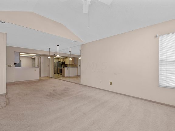 If you are looking for a one-story two-bedroom condo in Hilliard, this EPCON-built ranch condo in the Villas at Mill Run is the place for you! Step into the large living room with a vaulted ceiling, gas fireplace, ceiling fan, and dining space. The open kitchen has stainless steel appliances, tile backsplash and laminate countertops, and access to the one-car garage with a pull-down staircase leading to additional storage. The primary suite features a full ensuite bath and an attached walk-in closet. The second bedroom includes a ceiling fan, a large closet and adjacent full bath. The front courtyard patio offers space for relaxation or entertaining. Priced below market because the seller is aware of the need for updates. The Villas at Mill Run offers a clubhouse, fitness center and pool.