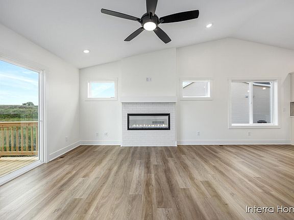 Interra Homes presents the Ashford. Come look at this 3 bedroom, 3 bath condo. The cathedral style ceiling in the living room coupled with the electric fireplace provides a comfortable, spacious area. The main floor primary bedroom boasts a large walk-in closet, dual-sink vanity and a ceramic tile shower. The kitchen also has cathedral style ceilings along with an island and a convenient pantry. The full-height tile backsplash provides a nice touch to go with the solid surface countertops. The laundry room is off the mudroom on the main floor. The basement features a finished rec room, bedroom and full bathroom along with plenty of storage space. Enjoy the deck off the dining room on a summer night. This condo features a 2-stall garage.