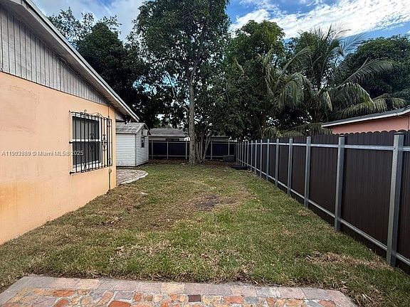 Charming 3-bedroom, 1-bath with ample parking and 7500 SQ FT Lot lot home in Miami Gardens. Spacious front yard with a driveway. Spacious open layout Living room and Dinning areas with Modern Kitchen. Full Laundry Room with Cabinets and Yard access. Recently Renovated Bathroom and ample sized rooms with lots of natural lighting. Great size backyard & outdoor Workman Shed. Central location near Florida Turnpike and Hardrock Stadium. Freshly painted rooms and flooring - interior & Exterior A/C 2022, Roof is 12yrs & Water Heater 2022.