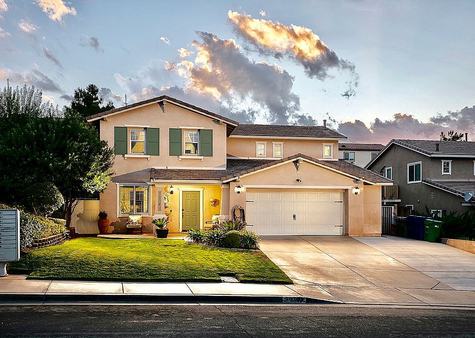 Stunning West Palmdale 2 Story Home, Easy Access to Freeway, a commuters Dream. NO HOA & NO Mello-Roos! Serene & relaxing front patio is a great place to start your day with a cup of coffee. Light & Bright formal living & dining room with wood flooring & plantation shutters. Great open spacious floorplan flows right into the kitchen & family room area. The kitchen has ample ebony cabinets, granite counters, decorative stone tiled back splash, large pantry, breakfast bar & open to the informal dining room & family room. The family room has a fireplace, ceiling fan & double French doors over- looking the back yard. There is a powder bathroom downstairs as well as a spacious laundry room. Upstairs there is a large primary bedroom with decorative barn door to attached bathroom. Bathroom has dual sink vanity, separate bathtub & shower as well as a large walk-in closet. The 3 secondary bedrooms are all spacious with ceiling fans & large closets & share a secondary bathroom with massive vanity. Covered patio in backyard extends the length of the house, above ground spa, lush landscaping & block wall fencing as well as attached 2 car garage. This is a must-see home.