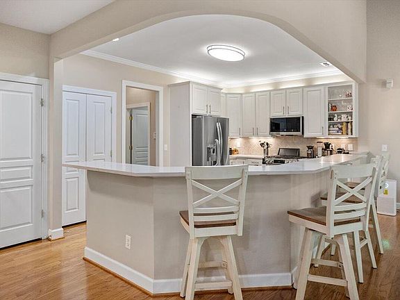 Located just minutes from I-440, I-40, the NC Museum of Art, and the Lenovo Center, this elegant townhome offers convenience and craftsmanship in one of Raleigh's most desirable areas. The open main-level layout features a gourmet kitchen with gas range, under- and over-cabinet lighting, soft-close drawers, and lighted family room shelving around a cozy gas fireplace. Tray and cathedral ceilings, crown molding, and a main-level office add sophistication throughout. Each spacious bedroom includes its own full bath, while the open loft provides additional flexible living space. The fully finished, apartment-ready basement is perfect for guests or entertaining — complete with a kitchenette, bar, wine cellar, craft room, and a second gas fireplace. Step outside to a serene patio and deck overlooking the private, wooded lot. Additional highlights include 3-zone heating and cooling, surround-sound hookup, and thoughtful details throughout that make this home truly exceptional.