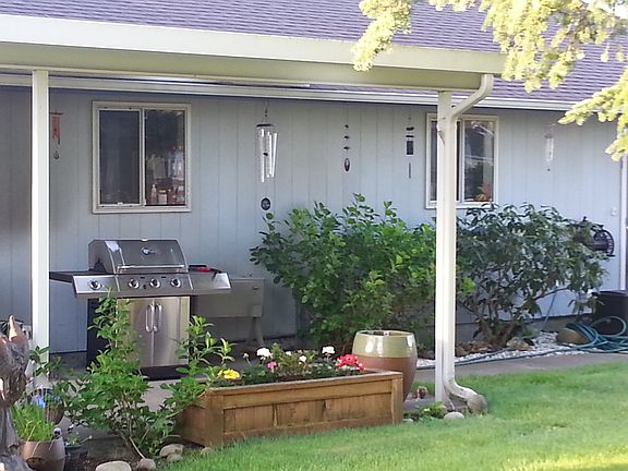 Classic rambler in a private 1+ acre park like setting with large shop, RV parking & covered overhang. Relax in this private fully fenced spacious back yard with extended deck & covered patio, hot tub, garden area. Open floor plan features large living room w/free standing stove, kitchen w/eating bar opening to dining room w/decorative chair rail, nice sized laundry room & additional mud room; master bedroom has private bath & walk-in closet.