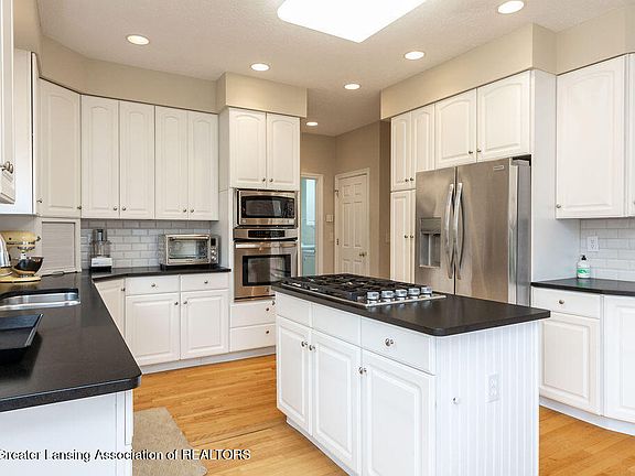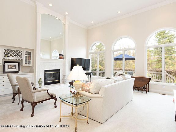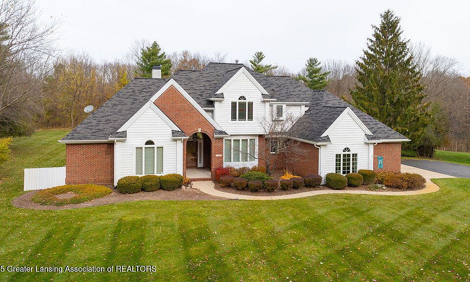 River Cove Subdivision - 1.25-acre homesite in Delta Twp. Close to river access, Moores River Park, I-96, and I-69 expressways! An exciting opportunity to own this well-built home in River Cove. This two-story home with 3,215 sq ft offers 4 bedrooms, 3.5 baths, a main floor primary suite, a private study, and a 3-car garage, all situated on a wooded 1.25-acre lot that backs to Anderson Nature Park—a passive recreation area popular with trail enthusiasts and outdoor lovers. Just off the foyer is a spacious formal dining room, designed for entertaining, that opens to a large great room filled with natural light and features a fireplace, adding warmth to the heart of the home. The well-equipped kitchen boasts stone counters, ample planning, cooking, and storage space, and includes a dining area for everyday meals, as well as a hearth room or living room with a planning desk, a wood-burning fireplace, and access to a deck and private yard. The main-floor laundry room has a washer, dryer, sink, and folding space to keep things tidy. The primary suite, with 10-foot ceilings, is generously sized and features private access to the deck and yard. Its en-suite bath offers a jetted tub for relaxation, a step-in shower, a dual vanity, and a spacious walk-in closet. A convenient hall powder room completes this level. A sweeping staircase from the foyer leads to the second-floor bedrooms, including a junior suite with its own private bath with a step-in shower, and two additional bedrooms sharing a bathroom with separate vanities. A secondary stairwell from the hallway leads down into the kitchen, providing quick access for snacks or a rapid departure, to wherever life leads. This home features numerous custom upgrades and finishes, with incredible landscaping, Andersen windows, a 14 KW generator, 200 AMP service, a water service in the garage, a new refrigerator, microwave, and dishwasher, as well as a new water heater installed in 2023! Life can be busy and hectic at times. Take a moment to slow down and enjoy nature. Breathe and live it right here!