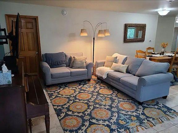 This Fully Furnished Apartment has TWO BEDs (1 King, 1 Queen), 1 bath with shower/tub and side by side sinks, Washer/Dryer, Dishwasher, Stove/oven, Microwave, Fridge/freezer & a wall mounted Roku TV. The property has a warm and cozy atmosphere, with radiant floor heating and enjoyable sofa sleeper, loveseat, additional lounge chair, dining table/chairs. Majestic Mt. McKinley view from kitchen window and stunning city lights views from bedroom windows will take your breath away.