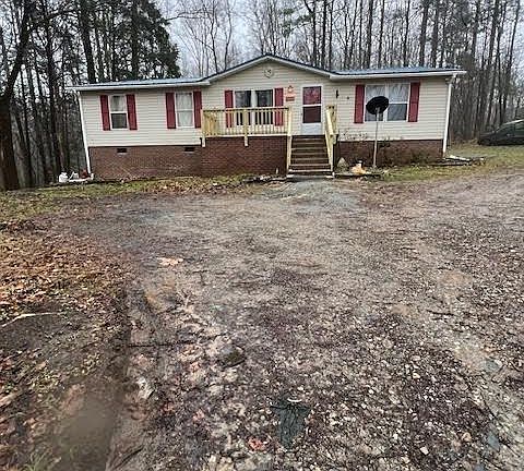 Looking for home with acreage...here it is!! Cute home with recent updates, home is sitting on a hill with 5.0 acres partially wooded plenty of room to spread out. Left property line is on the creek. Big back yard fenced for pets and side yard with BBQ grill and place to relax and look down at the creek, and enjoy the outdoors.. New updates: metal roof 2 yrs with warranty, HP replaced 2024, hot water heater replaced 2023, laminate flooring waterproof laminate in the kitchen, wood burning FP place back up heat in the den/dining room. Updates in recent years, metal roof, painted all ceilings, bathrooms freshly painted; new STL railings around perimeter of the front stoop and railings for the steps, and a few other repairs to be made. Storage building to be emptied also prior to closing. Location only 10 miles to SVCC and 12 miles to Alberta, close to I 85 to commute to North areas or to nearby Blackstone, Kenbridge, South Hill and other areas makes for easy commute from the location.