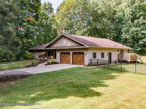 Beautifully updated 4 bedroom, 3 full bath ranch on 2.56 acres—and if chickens are your thing, you'll love that it's zoned agricultural. The tree-lined street feels like country living yet is right in town. The remodeled kitchen shines with newer stainless steel appliances, 5-burner gas range, generous counter space, and a huge island with seating. Enjoy a spacious family room with big windows overlooking the backyard and a formal living room with a dramatic stacked stone fireplace wall. Hardwood floors run through much of the home, while the primary suite offers a walk-in closet with a Closets by Design system and a freshly updated bath. The home is wired for a portable generator, has an EV hook up in the garage, fresh paint, stylish lighting, and updated baths—ready for