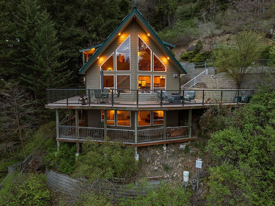 Welcome to Waterfront Paradise on Deer Lake! This beautifully crafted, unmatched home sits on not one, but TWO primary lakefront parcels. With easy beach access, your own private dock, stunning views from every angle, and so much character- this is lake living at its best! From the knotty pine cathedral ceilings, striking custom log staircase, and granite countertops in the bathrooms, it is the perfect blend of cozy cabin charm and thoughtful luxury. Bring the whole family with 3 large bedrooms, a lofted office space, 3 bathrooms, two spacious living areas and a deck on each level. This home has been meticulously maintained with geo-engineered helical piers for rock-solid stability, Hardiplank siding and a new composite deck in 2020. Kayaks and fishing poles await- truly a must-see property!
