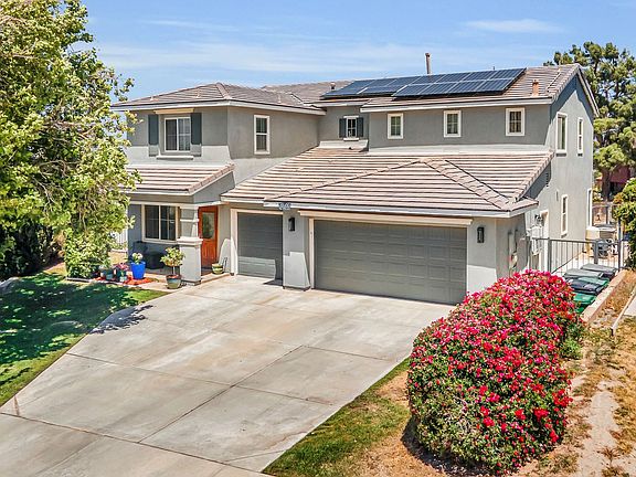 Absolutely stunning with backyard oasis and pride of ownership! Beautifully remodeled and upgraded, WESTSIDE turn-key 5 bedroom 3 bath nestled in quiet mature neighborhood with open floor-plan, spacious gourmet kitchen with island, stainless steel appliances and custom cabinets with high-end granite countertops, fresh 2-tone paint throughout, tile, luxury vinyl plank and plush carpet flooring, recessed lighting, ceiling fans, sizeable bedrooms including master suite with balcony, central heating and air conditioning, indoor laundry, fireplace, large completely fenced backyard with covered patio, 3-car garage with automatic openers, dog run and so much more. Additional features include downstairs bedroom and full bathroom, EV charger, smart pool and spa equipment controlled by phone app and don't forget the massive solar system. This lovely home offers easy access to the freeway and is located near schools, parks and shopping. Come see and call it home.