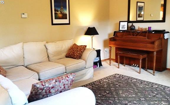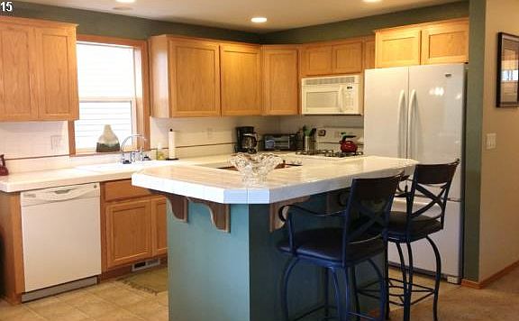 Well kept 3 bdm,2.5 bthrm,kitchen opens to great room. Deck perched overlooking the trees backing to greenspace which lends to a feel of privacy and serenity. Vaulted master with master bath and walk in closet. Approx.400 SF unfin room w/sep entrance for storage. Landscaped and fenced backyard. Walking trails and play structure in nbrhd.Wash,Dryer,gas stove and newer refrig are included.Walking trails galore!Open house May 17th 1-4p.m.