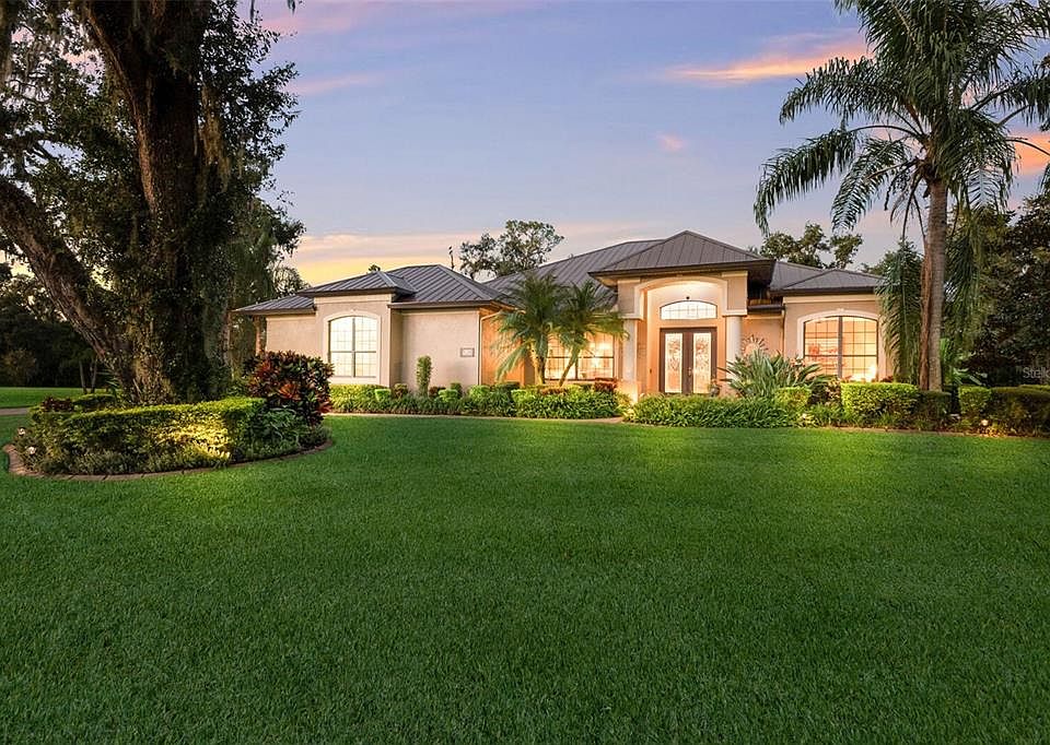 Highly sought-after Twin Rivers is where you’ll find this stunning, custom-built Mark Cahill home — perfectly positioned in a serene, park-like setting surrounded by majestic oaks, swaying palms, and lush lawns. This immaculately maintained residence blends timeless craftsmanship with thoughtful recent upgrades and incredible 'Old Florida' curb appeal. Step through the beautiful glass double doors into the inviting foyer and take in the open, well-designed floor plan. Beyond the wall of disappearing sliders, the private lanai and refreshed pool and decking create a true outdoor oasis framed by the tranquil natural preserve. Boasting 3,235 sq. ft. of living space, the home includes three bedrooms, three full baths, a spacious great room that flows effortlessly into the kitchen and pool areas, a formal living and dining room, and a dedicated office/den with French doors and built-in shelving — ideal for working from home or nursery. The chef’s kitchen is a showstopper — complete with double ovens, two prep sinks with disposals, granite counters, abundant 42” solid wood cabinetry with crown molding, a separate pantry, and a butler’s pantry with glass-front display cabinets. Ample natural light pours in from solar tubes, while under- and over-cabinet lighting enhances both style and function. The split bedroom floor plan ensures privacy for everyone. The luxurious primary suite offers his-and-her walk-in closets, plantation shutters, dual vanities, an oversized jetted soaking tub, and a fully tiled walk-in shower “room” with dual shower heads. The en-suite guest bedroom features its own large tiled shower and walk-in closet — perfect for extended stays. Throughout the home, you’ll find 6” crown molding and baseboards, upgraded lighting and ceiling fans, complete interior painting including ceilings, and updated fixtures that give the entire home a fresh, sophisticated feel. Outdoor living shines on the private, screened lanai — perfect for lounging by the sparkling pool, entertaining, or relaxing under the café lighting that adds a touch of evening magic. A new (2023) 5V painted metal roof crowns the home for years of beauty and durability. Garages & Storage- Main home: Oversized 612 sq. ft. two-car garage with tall ceilings and built-in storage. Detached garage: Additional 550 sq. ft. air-conditioned two-car garage ideal for hobby space, vehicles, or workshop use — both with pull-down attic storage. And a wide, paver driveway provides ample parking for guests. Additional Opportunity- An adjacent premium lakeside lot is also available under separate contract — ideal for additional privacy or future investment. Community Highlights- Residents enjoy a fishing dock, kayak/canoe launch, playground, basketball and volleyball courts, soccer field, and scenic walk/bike/golf cart-friendly streets throughout this beautiful Twin Rivers community.