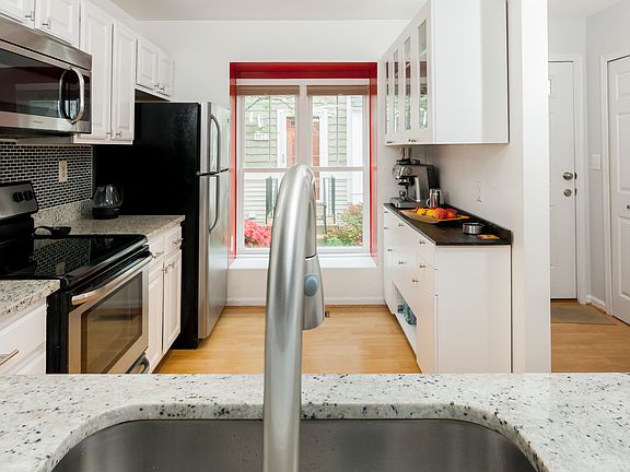 Charming tri-level townhouse with 2 upstairs beds, 2 full baths, 2 half-baths plus tastefully updated basement. Built in 1987 and designed in a Victorian style, the home was recently renovated. Gleaming floors, bay windows. Kitchen features granite, SS appliances and more. Dine on the balcony or an even larger private back deck. Steps from Alcova Heights Park and close to shopping and dining.