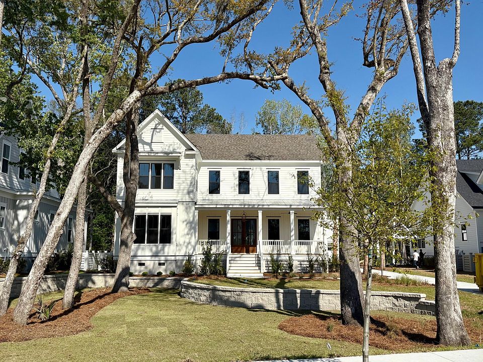 3837 Delinger Drive is the epitome of understated elegance on a .36 acre Riverside wooded lot. Top-quality appointments make this a meticulously crafted, truly one-of-a-kind home. Exuding classic style, the wide and deep front porch with metal roof accents and board and baton detailing are just a few custom elements of this plan. The main house includes 5 BDRM, 4.5BA, 3736 SF and the detached Carriage House adds an additional 528 SF bedroom and an additional full bath for a total of 4264 SF, 6 total bedrooms and 5.5 baths.The spacious double front door entry way has a clear view to the back of the home and is flanked by an elegant dining room featuring a stately butler's pantry and adjacent rather oversized walk-in pantry! An office/additional 1st floor bedroom is tucked away in the front of the home with an adjoining full bath. The kitchen/great room combination is open, spacious, full of windows, and provides direct access to the generous rear screened in porch. This space also features custom crafted built-ins on either side of the gas fireplace. The drop zone with built-in lockers and large laundry room is located near the rear entrance. The private owner's suite is on this main level with a feature rich master bath including a double vanity, a soaking tub, walk-in tiled shower with frameless glass shower door, a wide and deep walk-in closet. The second floor features a media/rec room space, three additional bedrooms all with walk-in closets, and 2 full baths. In the kitchen, high impact stainless steel appliances clearly set this builder apart, taking advantage of their 45 years of custom building. Custom appointments including on trend trim details are too much and too unique to mention! Design selections are available upon request. Featuring Lowcountry-inspired homes created by Riverside's award-winning custom builders, this unique offering provides a rare chance to enjoy a customized home just steps away from Bolden Park, Riverside Lake Club Pool & Pavilion and Riverside Crabbing Dock. Riverside provides residents with a true sense of community. Schools are within walking or bike riding distance, neighbors share conversations on wide front porches, and opportunities for relaxation and recreation are around every corner. Drive your golf cart to the pool, pickleball, dog park, library, restaurants, yoga or Costco! Photos shown are from a similar plan built by the same builder and shown for example purposes. Colors and finishes will vary. Design book available by request. Estimated completion late February/early March.