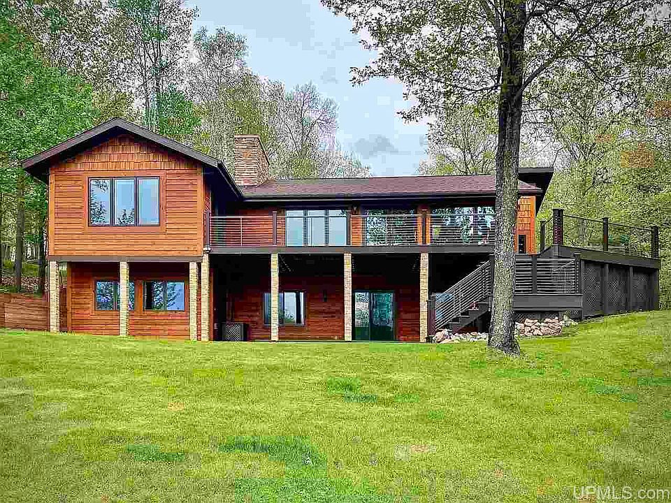 Waterfront living at its finest! Check out this Open concept 5 bedroom with 3 well designed full baths including a bidet. Home suitable for year around living. 110' of swimming frontage on Lake Ellwood with steps from a deck right into the water. Attached garage with plenty of space above additional garage just waiting for you to decide how to use it. Features include fireplace, large master bedroom, plenty of storage and closets throughout, walk out lower level with bar and gathering area leads you right to the lake and your brand new dock. Lake front views from multiple decks, natural light floods the home thru windows and skylights. If you are looking for luxury on a full recreational lake this could be the home for you.