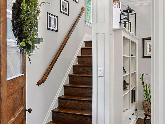Step inside through a spacious four-season front porch, a perfect flex space for soaking up afternoon sunshine or functioning as a mud room and stylish home office. The main living room welcomes you with abundant natural light from newer windows and classic architectural details including hardwood floors, an open staircase, crown molding, and built-in bookshelves.