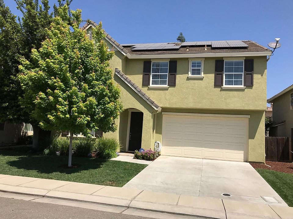 Spacious home located in the desirable Sylvan School District. Grand contemporary two-story with separate living room with soaring ceilings and separate formal dining room with luxurious wood floors. Beautiful eat-in-kitchen and family room, with butlers pantry, stainless steel appliances, granite tile countertops, and expansive center island with cherry stained cabinets. One bedroom and full bathroom located downstairs which is great for guests. Large open office loft space. Beautiful draperies throughout. Large master suite and bath with dual vanities, walk-in closet, and relaxing soaking tub. Leased solar panels for added energy efficiency