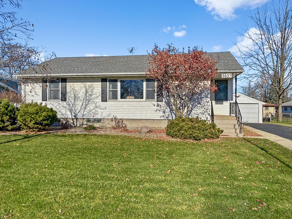 Welcome to this delightful ranch-style home, offering 3 bedrooms, 1.5 bathrooms, a spacious yard (with front irrigation system), and a 1.5-car garage. As you step inside, you're greeted by a sun-filled living room, with hardwood floors hidden beneath the carpet, that flows seamlessly into the eat-in kitchen featuring ample cabinet and counter space. Each of the three generously sized bedrooms offers plenty of closet storage. The cozy 3-seasons room, complete with its own gas heater, is perfect for enjoying year-round comfort. The partially finished basement provides versatile space, ideal for a workshop, storage, or transforming to suit your personal style. Outside, the large backyard is perfect for gatherings and entertaining. Located in a prime area close to shopping, dining, and with easy access to I-80/94, it's a great spot for Illinois commuters. This home is being sold as-is, offering a fantastic opportunity for you to make it your own. Don't miss out!