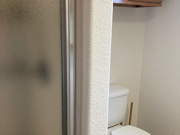 One bedroom downstairs duplex, one bath (shower only), kitchen with fridge and stove, living room, large bedroom with small area off bedroom for computer or sewing room.