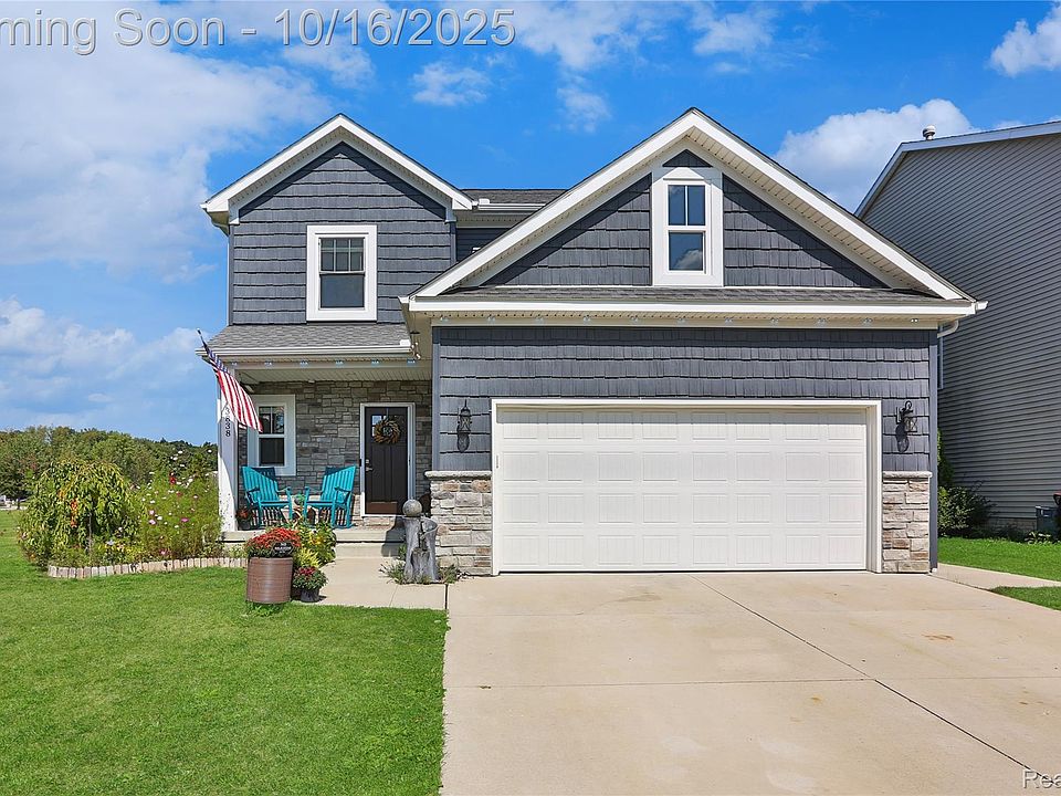 Welcome to your dream home in Holly! Former builder’s model loaded with upgrades throughout. Better than new—move right in! Open-concept main floor with bamboo flooring, designer lighting & chef’s kitchen featuring Quartz countertops, Merillat cabinets w/glass fronts, large island, subway tile backsplash & premium appliances. Upstairs offers 3 spacious bedrooms, 2 full baths & 2nd-floor laundry. Primary suite features 9x8 walk-in closet & spa-like ensuite w/Quartz double vanity & herringbone-tiled shower. Finished basement w/9-ft ceilings, full bath, wet bar & 2nd fridge. Heated insulated garage w/epoxy floors, Nest thermostats, fenced yard, sprinklers, upgraded trim & crown, surround sound wiring & security system. Prime location near Patterson Elementary, expressways & historic downtown Holly!