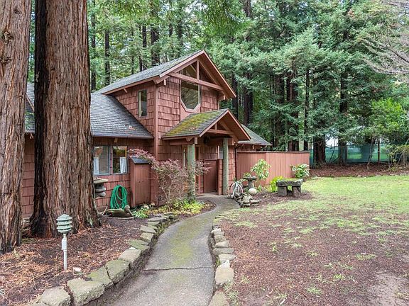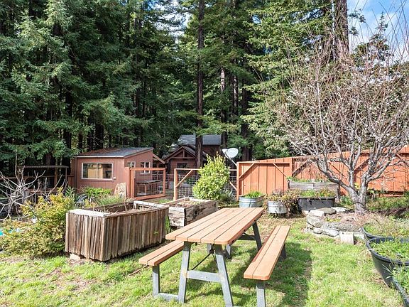 This single level 1 bedroom, 1 bath stunning architectural gem was originally constructed by Eric Black (renowned builder of European designed St. Orres Restaurant) and extensively remodeled in 2001. Back on the market through no fault of its own, the buyer moved from Washington intending to be closer to family in the Bay Area, then unfortunately realized the location wasn't right, packed & stacked & ready to move. Improvements made include major spring cleaning outside. Decks are power washed, paint touched up, some trees were limbed, and the lovely large fenced irrigated garden and fruit trees were freshened up. Now it is just waiting for your favorite veggies and flowers! There are 2 Darling sheds and potting garden counter w/sink and ample parking.The lot seems larger than 37,324 sq feet, enhanced by the adjacent Redwood Coast Recreation Center land. Feel like a game of Frisbee golf? Just walk out the back door and hike over to the course. Located just south of Bower Park, this home provides access to plenty of outdoor opportunities, whether you enjoy kayaking on the Gualala River, bicycling at the Gualala Regional Park, or attending events at the Gualala Arts Center! Mendocino County is a great place to escape the hustle and bustle of city life. The ancient Japanese concept of shinrin yoku, or forest bathing is easy to do here, with towering redwoods around you. Come bathe in the forest and enjoy clean air, good water and small community lifestyle!