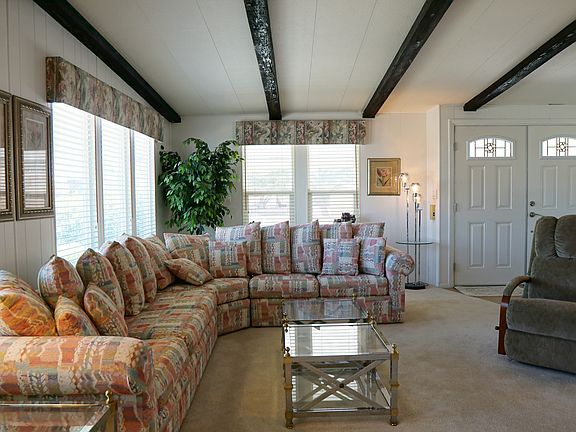 Available unfurnished, or fully furnished, a two-bedroom home on a spacious lot in the 55+ guard-gated Palm Desert Greens senior community. This remodeled home features an upgraded kitchen and bathrooms, newer windows and doors, cathedral ceilings, Solatube lighting, and an interior laundry room with a washer and dryer. Island kitchen with all appliances included.