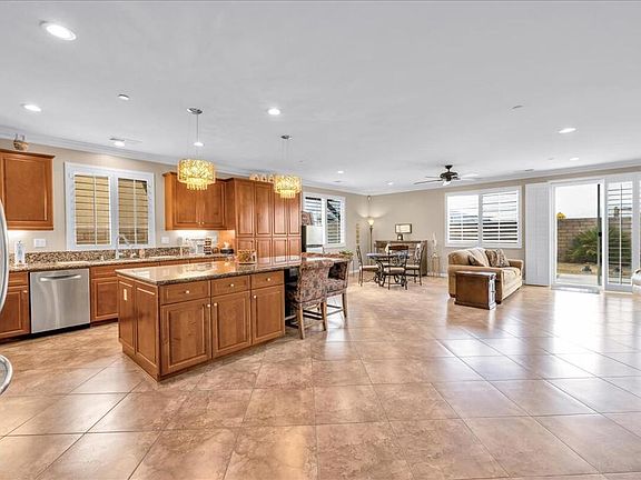 Welcome to this architectural gem in the highly sought-after Four Seasons 55+ community. The home features crown molding, arched doorways, stunning tile flooring throughout, and an inlaid tile mosaic at the entry. The open floor plan is light & airy with high ceilings, a spacious gourmet kitchen with an oversized granite island, abundant cabinetry with pull-out shelving & generous counter space for cooking and entertaining. The primary suite is a true retreat with a gas fireplace, and walk-in closet. The large bath featuring dual vanities, a soaking tub & walk-in shower. The living room, designed for memorable gatherings, also features its own gas fireplace. Enjoy peaceful evenings in your private backyard with views of the mountains and the Palm Springs Aerial Tramway illuminated at night. Additional highlights include plantation shutters throughout, 3 zoned HVAC controls, low-voltage lighting, and a private cul-de-sac location. Life at Four Seasons centers around The Lodge, a beautifully designed clubhouse offering a full calendar of activities, full time staffed, a fitness & aerobics studios, a ballroom, library, game room & more. Resort-style amenities include pools, spas, tennis, pickleball courts, BBQ's & scenic walking paths. Low HOA's include Frontier fiber optic internet. Just minutes from downtown Palm Springs, this home offers the serenity of a private community with convenient access to fine dining, shopping, entertainment & Casino's. More than a home, it's a retreat that blends beauty, comfort & community in perfect balance.