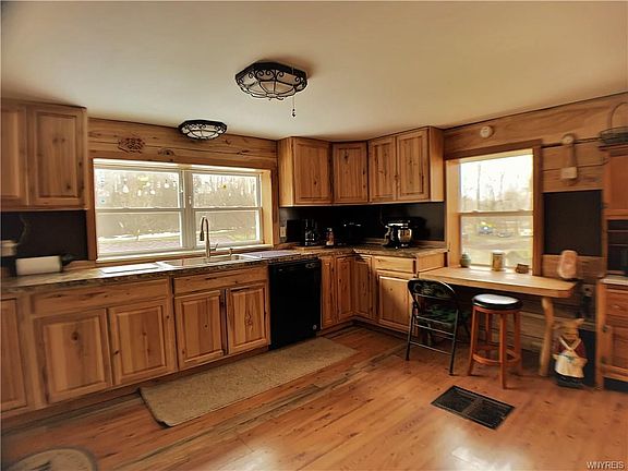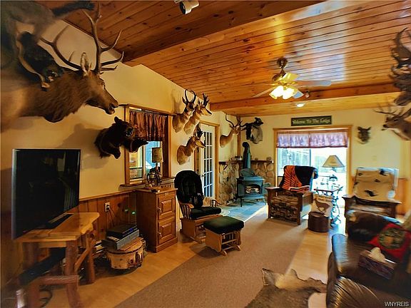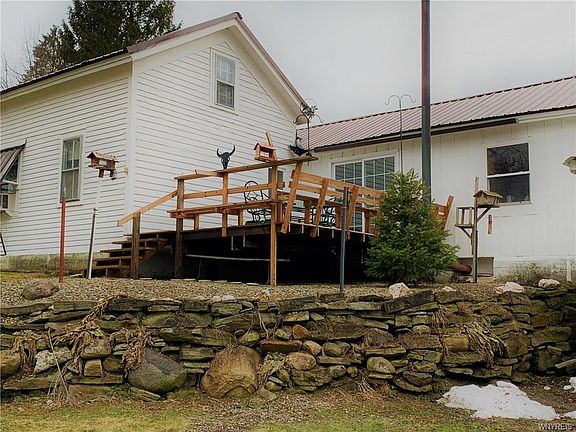 You need to see this one! Remodeled, 2+ BR/1 BA situated on 3+ private ac bordering Cattaraugus & Elton Creeks. Go fishing, kayaking or canoeing right from your back yard. A 43x45 heated shop w/sep 100amp svc & a 10,000 lb hydraulic lift, 18x24 detached garage & 20x24 attached workshop provide all the shop & storage you need! Motor home pad & picnic area w/elec & water. An open concept floor plan includes a 14x25 Great Room with sliders to a 10x12 deck overlooking 2 sm ponds w/connecting waterfall, and the cook of the house will love this beautiful custom kitchen w/attached dining area done in Cherry & Hickory. Slider doors off the dining area lead to a private 14x16 deck with built-in seats. Attached garage converted to hot tub/mud room. Choice of heat - wood furnace or Arcade electric.