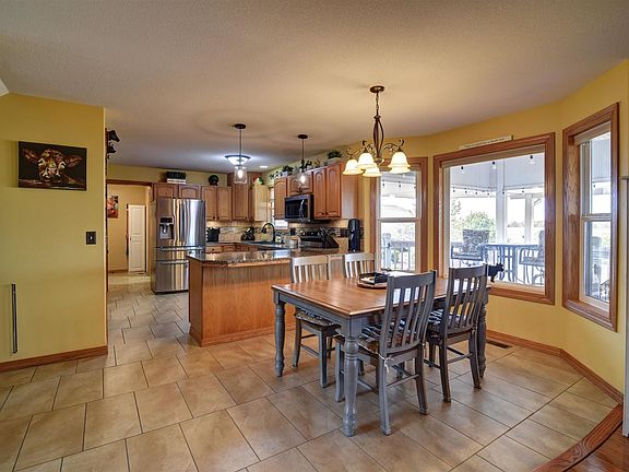Is your dream home a place in the country to watch beautiful Kansas sunrises & sunsets, yet not far from city amenities? This impeccably maintained 4 BR 3.5 BA 4 + car garage 2-story home on 5.16 acres close to Goddard offers all you need. High-end touches throughout, over 3,000 finished sq feet of living space plus a 40x60 Barn and 20x15 shed. The first thing to catch your eye will be the huge, wrap-around front porch over-looking the ample front yard with professional landscaping. As you enter, check out the beautiful oak hardwood floors in Foyer, Formal Dining & Living Rooms. The spacious Living Room is great for entertaining and wraps around to the chef's kitchen featuring tile floors, granite countertops, abundance of cabinetry, 2 pantries, and breakfast nook with bay windows. New convection oven, new microwave, newer dishwasher, Kitchen refrigerator is negotiable. Just off the kitchen is the mudroom-laundry room with convenient ½ Bath. Washer & Dryer stay. Three Bedrooms are on the 2nd floor including the Master Suite with more hardwood floors and double closets. Two sinks, granite countertops, glass walk-in shower, separate soaker tub and tile floors are found in the Master Bath. Hall Bath with new tub-shower combo, new toilet, granite counters, double sinks. The landing or loft area with built-ins and window seat finish out the upper level. More living space is found in the spacious finished walk-out basement with Family Room sporting another gas fireplace. The 4th Bedroom and the 3rd Full Bath are located here as well. You can exit to the backyard from the walk-out basement to a covered patio. Entertaining will be a breeze with nice landscaping and amazing views from the large covered deck overlooking the pond and acreage. Outbuildings include 40x60 Shop with overhead doors to front and back and 20x15 Shed with new roof. Low maintenance vinyl siding on home. New updates are HVAC, Water Softener, Kitchen appliances, Hall Bath tub/shower & Toilet. Newer well pump. Highly desired Goddard Schools, close to Lake Afton but yet a short drive to west Wichita. This stunning home with acreage has been very well maintained! Don't miss out on this one!! -- Call to schedule your private showing today!