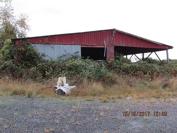Parcel consists of 2 tax lots and 5 parcels totally over 18 acres. Consists of ranch style house with large cathedral ceiling bonus room in addition to separate family and living rooms. Fireplaces in the bonus and family rooms. House on upper bench with four barns w/concrete flooring on lower level. House in disrepair; utilities are off. Serviced by Grand Ronde Water District