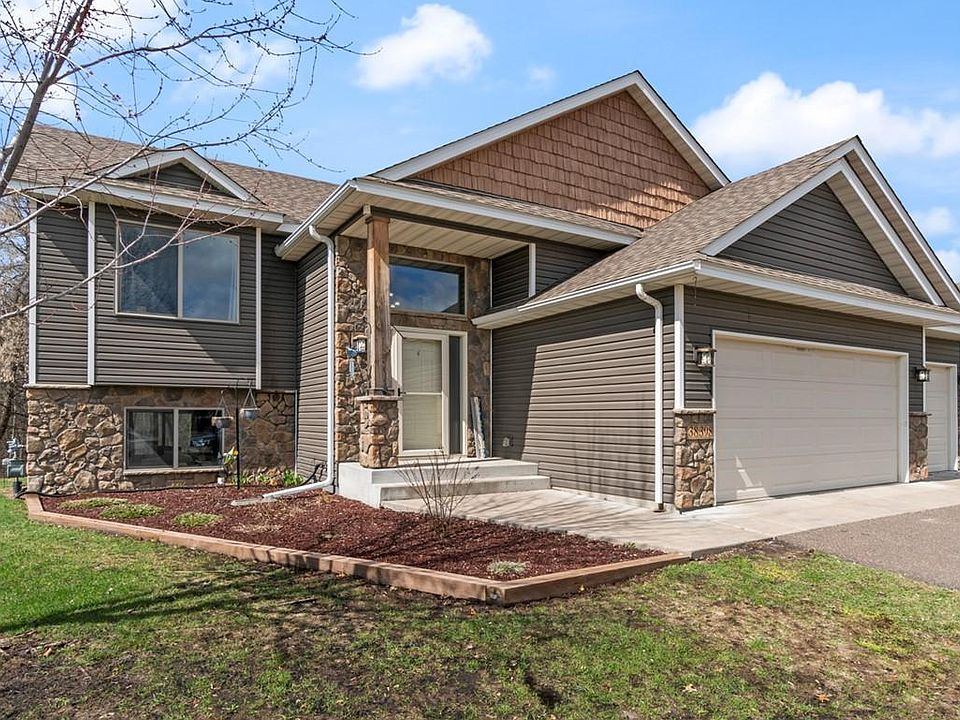 This home is the perfect combination of community connection to neighbors and nature. Enjoy the home’s lovely features, including great amounts of natural light, open floor plan, vaulted ceilings, three bedrooms all on the same floor not to mention a lovely view of the Sunrise River. The fourth bedroom offers privacy and a single bathroom on the lower level. Enjoy viewing nature while preparing, eating, and cleaning up after mealtime. The home is located near the end of the street, minimizing traffic levels to local neighbors. Living rooms up and down support entertainment choices for various ages and activity options. The spacious entry way serves as a welcoming space for guests, and greatly reduces weather from tracking into the rest of the home. The rest of the time enter the home thru its three stall insulated and heated garage. If you are looking for the perfect blend of town and country, this is the home for you! Come take a look!