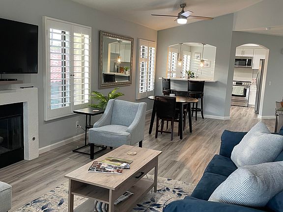 Tours for qualified individuals are available daily! Prestigious Palm Valley Country Club Condominium. ONE YEAR LEASE PREFERRED, but will look at all offers. Nicely Furnished, Secure Country Club Living! Welcome to the Friendliest Club in the Greater Palm Springs Area. Immaculately cared for, newly updated, complete remodel - luxury resort living in Palm Desert's Favorite Resort Style Country Club, Palm Valley C.C., located behind 24-hour guard gates. Featuring breathtaking views over expansive fairways and water features. Beautiful Lakes on one of two world-class 18-hole Golf courses. Incredible Views of the magnificent Santa Rosa Mountain Range. This spacious three-bedroom, two-bathroom condo is designed to strike a balance between style and comfort. Open Great Room style Floor plan with a Cozy Fireplace and fantastic Second-Story fairway Patio views. Short walk to the POOL and Jacuzzi, and Minutes to everywhere you want to be! Indian Wells Tennis Garden, Acrisure Arena, McCallum Theatre, El Paseo, Palm Springs Film Festival, Coachella, and Stage Coach, not to mention all the Fabulous Casinos and their great Entertainment Venues. GOLF, TENNIS, and PICKLEBALL are available, including a new nearby indoor Pickleball facility. Also Golf, Spa, Tennis, Pickleball MEMBERSHIPS AVAILABLE!