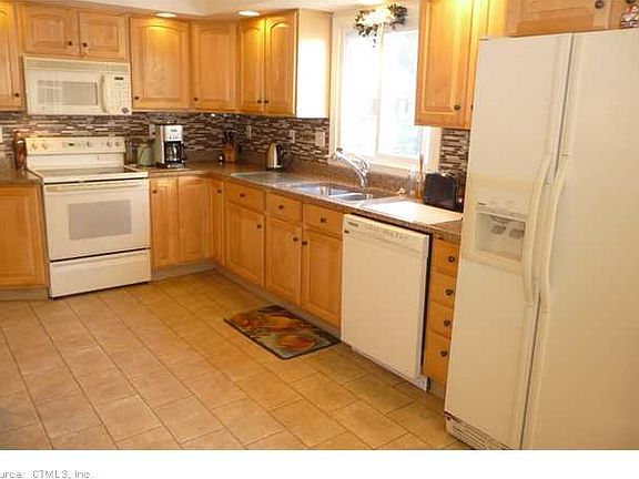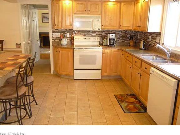 Large 5 bedroom, 3 bath Colonial with a partial stone front set on a private 3/4 acre lot. Remodeled kitchen is open to the dining room and first floor family room with a gas stove. You'll love the huge 19x15 3 season room with ski-lites and ceiling fan. There are 2 master bedrooms-one with a balcony and seating area. The fully applianced kitchen quartz counter tops. The lower level offers a heated family room. There's an attached 2 car garage and there's a generator hook-up. Call Peggy for all the details 860-836-0496 or email her at ERAGREGAN@aol.com