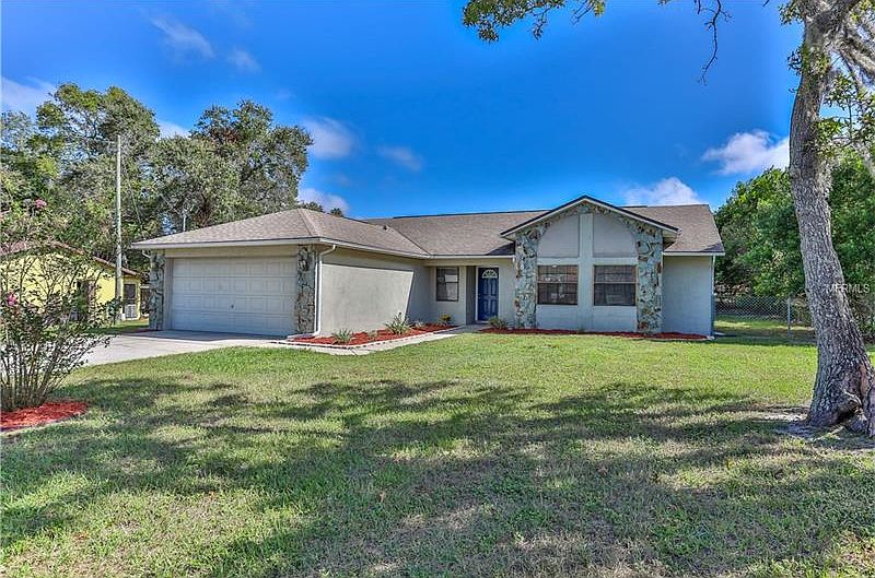 OPPORTUNITY KNOCKS ! 4 Bedroom 2 Bath 2 Car Garage in the Heart of Spring Hill. 2004 Architectural Shingled Roof, 2007 AC Unit, Open and Brite Floor Plan with Vaulted Ceilings. Kitchen offers plenty of cabinets & counter space plus a Breakfast Bar, Eat-In-Nook & Pantry. Inside Laundry Closet. Master Suite boasts a Huge Shower, Walk In Closet, Wood Laminate Flooring & Sliding Glass Door out to the Backyard. 4th Bedroom could be an office, nursery or den as it is separate from the other bedrooms. Covered Screened Back Porch and a Chain Link Fenced Yard. Larger than Most Yard so plenty of room to add a pool, fire pit, gazebo jungle gym.. or whatever your future needs may be.