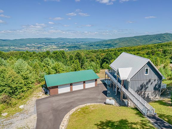 Imagine waking up to this view every morning! This incredible 7.92 acre property is perched high atop Cross Mountain, at an elevation of 3,464 feet, overlooking beautiful Shady Valley. The property includes a custom built home of approximately 3,024 square feet, completed in 2023, a 1,780 square foot , 3 bay garage and a 1,272 square foot RV garage. On the main level of the home, you will find a spacious kitchen and pantry, an open living and dining area with vaulted ceilings and a wall of windows to enjoy the view, along with a half bath, and a primary suite featuring a large walk-in shower and walk in closet. The upper floor has a loft/office area, along with a half bath that is plumbed and ready for a tub to make it a full bath. There is also a potential bedroom that is currently used as storage space that has been pre-wired for a mini-split unit. The lower level consists of a den, bedroom, full bath, workout area, laundry room (washer and dryer have not been installed) and an abundance of storage options. Some of the many upgrades include 5G wi-fi throughout, granite counters and stainless appliances in the kitchen, a permanent Generac propane powered generator, ceramic tile flooring, wrap-around decks, paved driveway and parking areas, and much more. The 3 bay garage has concrete floors and offers plenty of room for vehicles, ATVs, and a workshop. It is also plumbed for a full bath and laundry area. The RV garage has concrete floors and will accommodate an RV up to 45 feet, with 14 foot ceilings and a 14X14 door. All of this can be yours in the amazing mountains of Upper East Tennessee, offering easy access to the Appalachian Trail, Creeper Trail, Doe Mountain Recreation Area, Watauga Lake and Holston Lake, and the ski resorts of North Carolina.