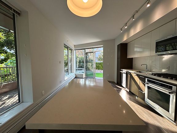 Welcome home to Canvas, located in the highly sought-after Mount Pleasant neighbourhood. This open-concept condo features wide-plank engineered wood flooring, 10ft ceilings, floor-to-ceiling windows, and two balconies that welcome natural light and fresh air. The gourmet kitchen is thoughtfully designed with custom soft-close cabinetry, Caesarstone countertops, stainless steel KitchenAid appliances, including a gas range, and a large movable island. Residents of Canvas have exclusive access to nearly 4000 sq ft of amenity space, including a fitness centre, bike repair station, collective workshop, artist gallery, and an outdoor courtyard with a fire pit and community garden plots.