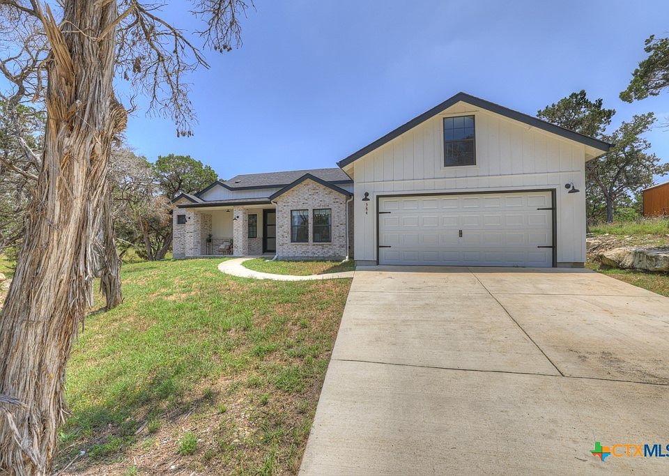 This gently lived-in modern farmhouse sits on a peaceful, half-acre lot, set back from the street by a long driveway ensuring privacy and RV/boat parking. This single-story home features high ceilings and an open floor plan, creating a spacious and airy ambiance. A wood-like tile floor runs throughout the entire house, offering easy maintenance. The family room features a beautiful, white-washed brick, wood-burning fireplace for those cold Texas months. The kitchen has a large island and upgraded marble-like quartz countertops, accented with gold fixtures. It's the perfect blend of luxury with modern farmhouse charm. There is a flex room that can serve as an office or a separate dining area. The spacious primary bedroom offers enough space for a sitting area for relaxation and/or a workout area. The primary bathroom is your very own spa retreat, including a walk-through double-headed shower, a soaking tub and a double vanity. The two additional spacious bedrooms make them perfect for family or guests. The laundry room is both functional and stylish with floor-to-ceiling cabinets, a sink, folding table, and a pull-out hamper. Outdoor living is enhanced with front and rear covered porches, providing an ideal spot for enjoying the peaceful surroundings and fresh air. The backyard is a blank canvas to make your own private oasis. The Cypress Cove community offers a swimming pool, fishing pond, a boat ramp for access to Canyon Lake on the left side, and kayaking access to the Guadalupe River on the right side. Don't miss the opportunity to own this beautiful home in the Spring Branch, Canyon Lake area.