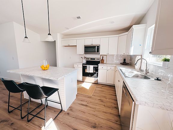 Spacious islandLuxury laminate flooringPlenty of cabinetsTile backsplashOpen layoutSpacious laundry room