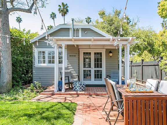 French doors in the bedroom lead to a patio and a spacious backyard. The well-lit backyard is cozy and perfect for an outdoor meal or morning coffee. Grill a nice meal with friends or family in the backyard.