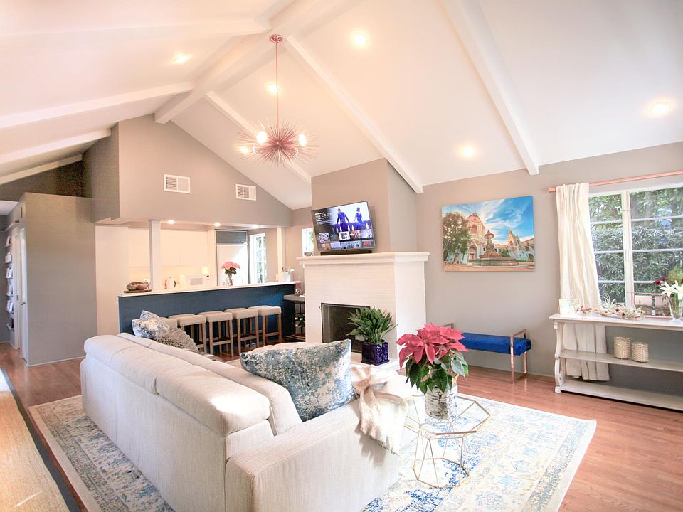 Enjoy the open floor plan, cathedral ceilings, hardwood floors, & changeable Philips Hue lighting throughout.