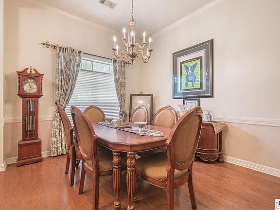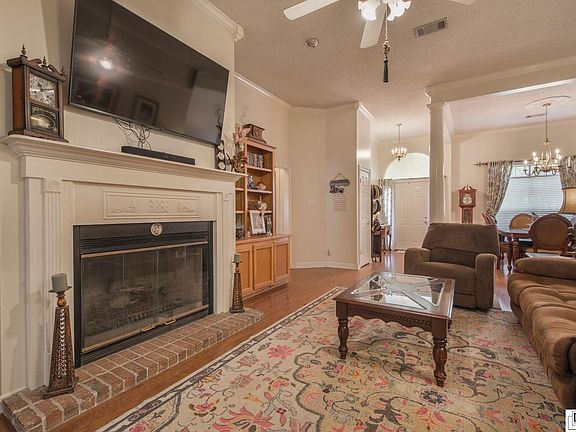 Stepping through the front door of this stately brick home, you will be amazed at the elegant details. High ceilings (9' & 11') are adorned with exquisite crown molding throughout. The formal dining space is anchored by a graceful column leading into the main living space. The kitchen boasts elegant stainless-steel appliances with beautiful granite countertops. Enjoy the split floorplan with the primary bedroom suite on the left side and the other bedrooms separated with a jack and Jill bathroom (with two sinks!) on the right. Have your coffee in the brick-floored sunroom overlooking the pristine pool which is maintained weekly by a professional pol company. Top the day off catching a glimpse of wildlife strolling by the back fence separating the back yard from the adjacent almost 80-acre private property! (Roof replaced in 2020, and hot water heater replaced in 2021.)