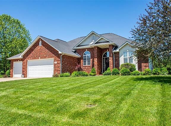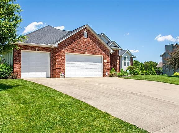 Beautiful spacious split bedroom ranch in desirable Witte Farms! Stately red brick exterior w/ professional landscaping & covered entry. Quiet office tucked away off main entry, grand living room w/ full picture windows & vaulted ceilings. Spacious living room w/ fireplace open to dining area/gourmet kitchen's butterfly peninsula. Kitchen includes abundant counter space/pantry/staggered wood cabinetry including a gracefully backlit glass front display cabinet, black stainless appliances & more. Master includes en suite w/ split vanities/2 closets/tub/large shower & private screened in patio. 2 add'l bedrooms share full bath. Open stairs to finished basement entertaining area, plumbed for wet bar. Utility staircase from 3 car garage with east access to basement. Full bathroom, bedroom, & private office/game room space. Huge add'l unfinished storage! Nearly new hvac/water heater/sump pump/roof 2012. Beautiful deck overlooks flat, fenced, tree-backed backyard. This is a must see home!