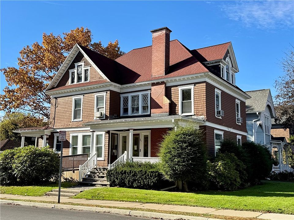 We found you quite a GRAND VICTORIAN DAME oozing with character, grace and charm! For the past few decades she's been used for professional offices without altering the floor plan and gracious flow. The grace and charm is very apparent entering through the beveled glass vestibule and taking in the grand light-filled open staircase. The living room, with fireplace and leaded glass windows, runs the width of the front of the home. The dining room is on the opposite side of the foyer, with the very large butler's pantry and kitchen just down the hall. A large first floor bedroom (or family room) with half bath and the laundry room round out the first floor.
