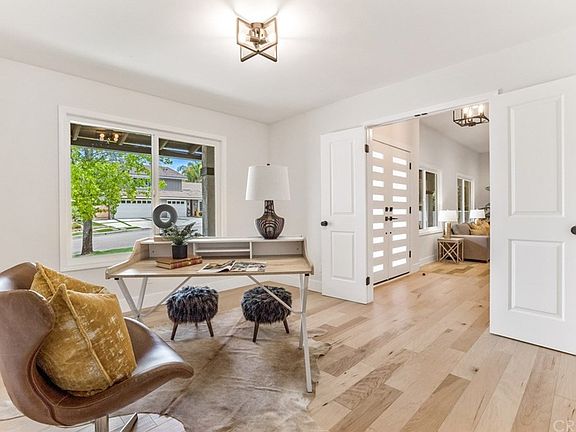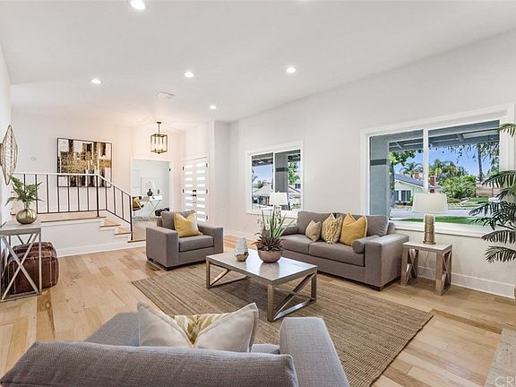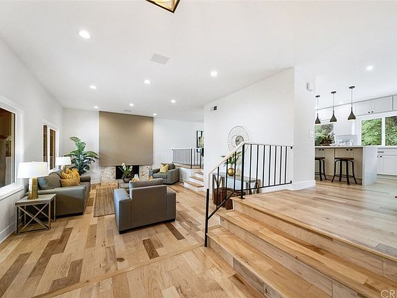 Sophisticated Turnkey remodeled Modern Contemporary home in a very desirable Lynn Estates. Voluminous ceilings & rich wood plank floors accentuate the light bright interior. This 5 bed 3 bath home is an entertainer's dream, the home has been extensively remodeled and offers a beautiful open floor plan with a seamless indoor/outdoor flow, a grand living room with fireplace, formal dining room, gourmet kitchen with center island and all new appliances, cabinets and countertops. Adjacent is the great room which offers a warming fireplace, wet bar & sliding glass doors, giving access to the expansive lush private backyard. The second level includes three generously sized secondary bedrooms and a romantic master suite with an updated bath adorned w/chic tile detailing, large shower & soaking tub. Many upgrades including; electrical panel, engineered wood flooring, recessed lighting, windows, front door, inside doors, AC with Nest thermostat, closet doors in bedrooms, smooth ceilings, new paint, front and back manicured lawn and more!. This elegant estate presents first class experience of true California living and has an inviting ambiance throughout. This home is in a great location: Close to a top CA rated 100 Blue Ribbon School, parks, shopping, grocery stores, Los Robles Regional Medical Ctr.