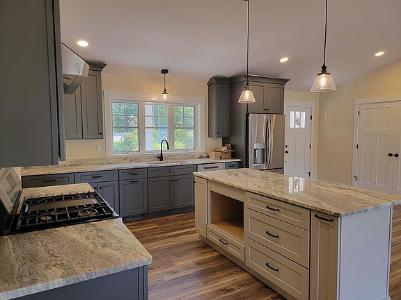 Escape to your private sanctuary in this stunning, brand-new ranch. Set on over four acres of picturesque land, this home offers a perfect blend of modern luxury and peaceful, natural surroundings. Step inside to an open and airy floor plan where the kitchen and living room flow seamlessly together. A cozy gas fireplace anchors the living space, creating a warm and inviting atmosphere. The home is bathed in natural light, pouring in through large windows that frame peaceful views of old pasture land. Imagine sipping your morning coffee while watching local wildlife from the comfort of your living room. The kitchen is an aspiring chef's dream, featuring a butler's pantry with a sink for easy entertaining and organization. Retreat to the spacious primary ensuite, a private oasis designed for ultimate relaxation. From the living room, a sliding glass door leads to a sunny and private back deck, the perfect spot for summer barbecues or simply unwinding while taking in the serene landscape. Enjoy the best of both worlds with this prime location. You'll have direct river frontage and be close to walking trails, while still being just a short drive from shopping and dining. With its perfect commuter location, this home offers an idyllic and convenient lifestyle.