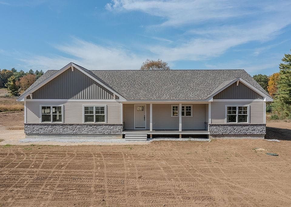 Escape to your private sanctuary in this stunning, brand-new ranch. Set on over four acres of picturesque land, this home offers a perfect blend of modern luxury and peaceful, natural surroundings. Step inside to an open and airy floor plan where the kitchen and living room flow seamlessly together. A cozy gas fireplace anchors the living space, creating a warm and inviting atmosphere. The home is bathed in natural light, pouring in through large windows that frame peaceful views of old pasture land. Imagine sipping your morning coffee while watching local wildlife from the comfort of your living room. The kitchen is an aspiring chef's dream, featuring a butler's pantry with a sink for easy entertaining and organization. Retreat to the spacious primary ensuite, a private oasis designed for ultimate relaxation. From the living room, a sliding glass door leads to a sunny and private back deck, the perfect spot for summer barbecues or simply unwinding while taking in the serene landscape. Enjoy the best of both worlds with this prime location. You'll have direct river frontage and be close to walking trails, while still being just a short drive from shopping and dining. With its perfect commuter location, this home offers an idyllic and convenient lifestyle. This home is ready to go!