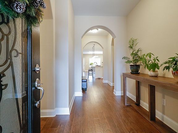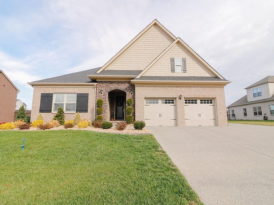 Unique 2 yr old home with tons of upgrades on new private street. Custom landscape, open floor plan, 42 inch cabinets with lighting, quartz counters, stainless steel appliances all come with home including washer and dryer. Custom wood shutters and hardwood throughout home, stone fireplace. Seamless glass walk in shower in owners bath with walkthrough closet to laundry. Walk-in closets in all bedrooms. Walk-in attic for extra storage. Large bedroom/bonus upstairs with full bath. Covered patio, fenced yard with sod, irrigation and much more! More photos to come.
