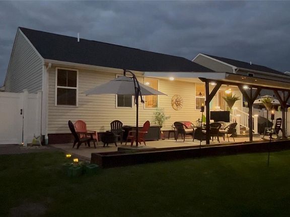 Move-in ready newer ranch with private, enclosed yard. Enjoy summers on the 40 x 15 covered concrete patio and walkway. Owners added outdoor lighting, colored concrete and a permanent roof over patio. Perfect one-floor living with partially finished basement. 50K in additional features added after purchase. A true gem!