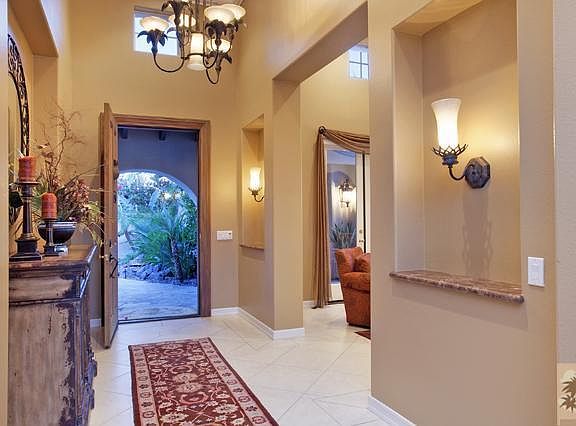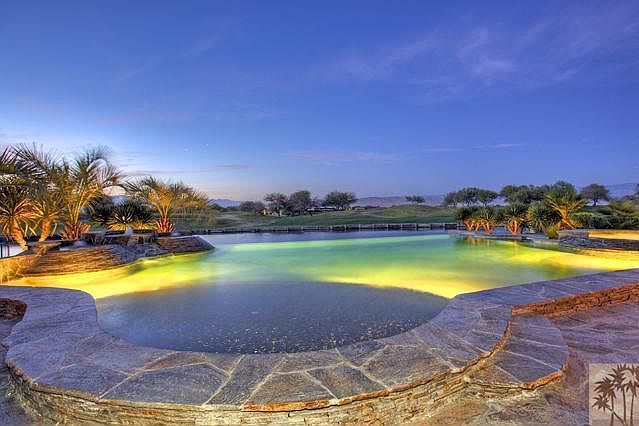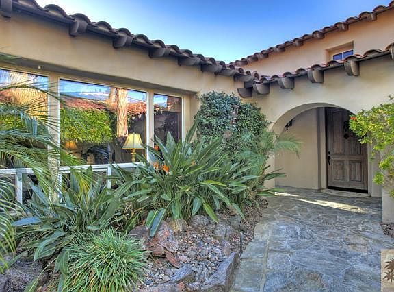Play Where You Live! Private country club with golf,tennis,croquet and fitness. Beautiful, 3 bedroom,3 bath,single family home with great room,family room,kitchen with island granite counter tops,kitchen aid appliances,gas stove top.Detached casita with bath.Lush landscaping with patio overlooking pool,lake and golf course.Membership to fitness,dining club in Mission Hills with home owners dues