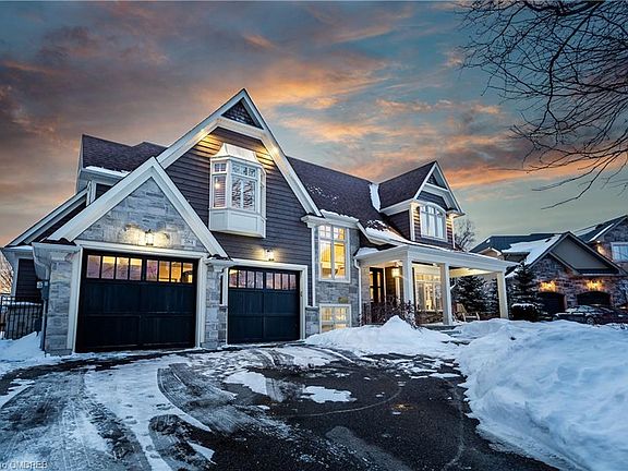 When a stock Custom built home in South Oakville isn't enough for you, when you're looking for that extra something that really stands out above the crowd, you want this house. Nestled in the sought after Bronte West neighbourhood, on a quiet street known for its large lots and newly built custom homes. This beauty has a backyard oasis for the entertainer in you. Extensive landscaping, irrigation system, large pie shaped lot and a gorgeous salt water in-ground pool with water feature, lighting, dive rocks, and built in 4 season infinity hot tub. Unwind with a glass of wine in the outdoor entertaining area which features an expansive covered porch with built-in gas fireplace, outdoor speakers, pot-lights, abundance of natural stone, interlock & reclaimed wood detail. This home has over 5000 sq ft of finished living space! The entire main floor overlooks the backyard with dual walkouts. Open concept living, hand scraped hardwood floors, built-ins, chefs kitchen with high end appliances, an oversized quartz clad island and a custom wine tasting lounge with custom temp controlled rock clad wine wall that will have you truly enamoured. The second floor features a luxury primary retreat + 5pc spa-like ensuite as well as 3 additional generous sized bedrooms and two 4 pc washrooms. As you make your way down to the finished lower level you'll be pleased to find cork flooring, a home gym, large recreation space for casual entertaining and a guest suite with its own 3pc bath. The garage is an awesome must see as well. Live here and love it.