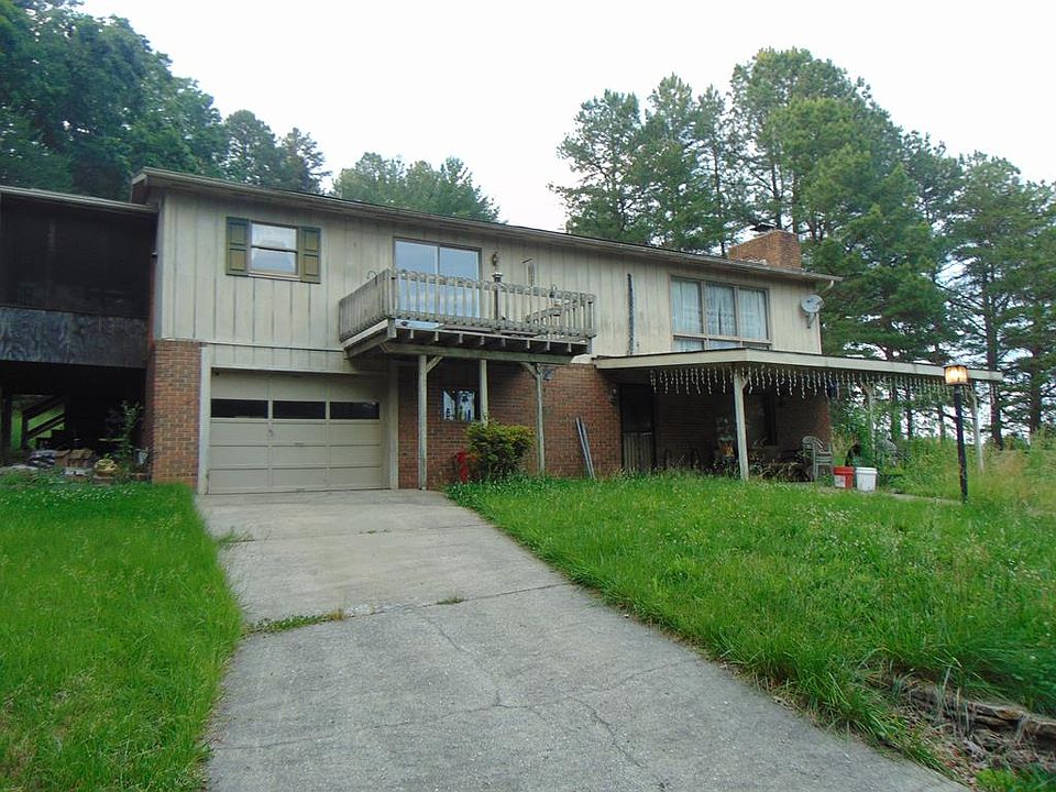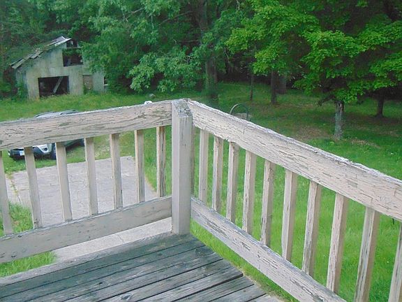 4-5 Bedroom/2.5bath home sitting on top of the hill on 5.87 private acres.Has large in-ground pool (unknown condition )..Walk out basement with large family room and fireplace,bedroom,bath and additional office/bedroom and 1 car attached garage.Additional shed and pool storage and a large barn needing repairs. Large gathering spaces both inside and out.